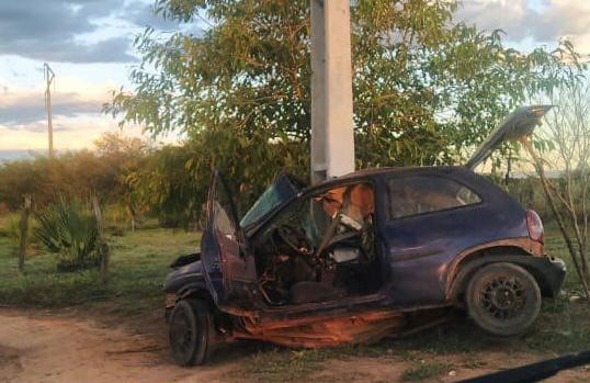 Paratinga-BA: Carro quase parte ao meio em colisão contra poste